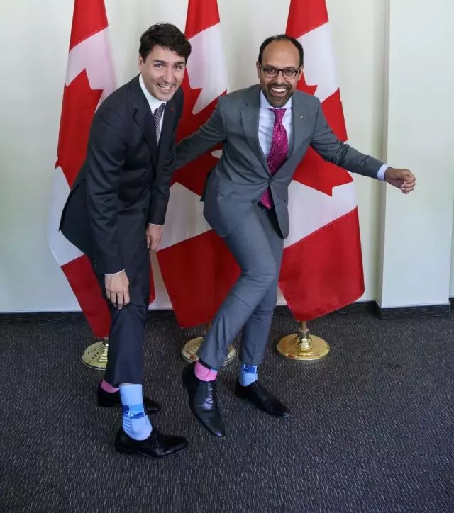 不过身为一国总理,特鲁多还掌握了一项特殊的外交技能:出席外交场合、参加大型活动时,穿上一双“主题袜”,瞬间吸引全场目光。