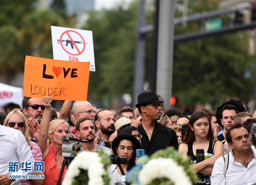这是6月13日,人们在枪击案发生后参加悼念仪式。新华社记者 殷博古 摄