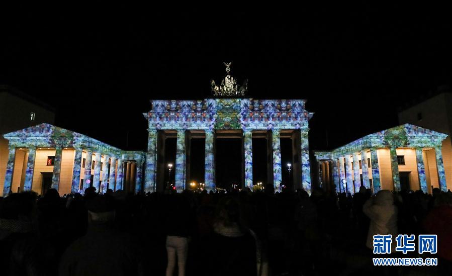 这是10月6日在德国首都柏林拍摄的被灯光点亮的勃兰登堡门。当日,一年一度的柏林灯光节开幕,多处地标性建筑被绚丽的灯光点亮。本届灯光节将持续至10月15日。新华社记者单宇琦摄