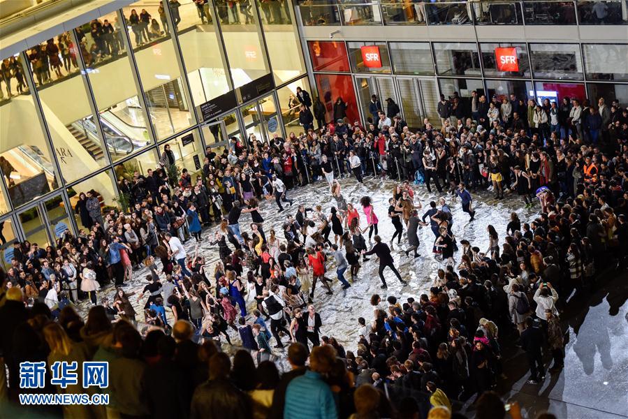 10月8日,人们在法国巴黎莱阿勒购物中心跳舞。第16届法国巴黎“不眠夜”艺术节于当地时间7日晚至8日清晨举行。根据巴黎市政府发布的消息,“不眠夜”期间巴黎各区域及郊外共举办了超过150场艺术活动,不少博物馆、画廊、公园、广场、教堂等纷纷化身临时展厅,供艺术家和观众彻夜享受这场艺术狂欢。新华社记者陈益宸摄