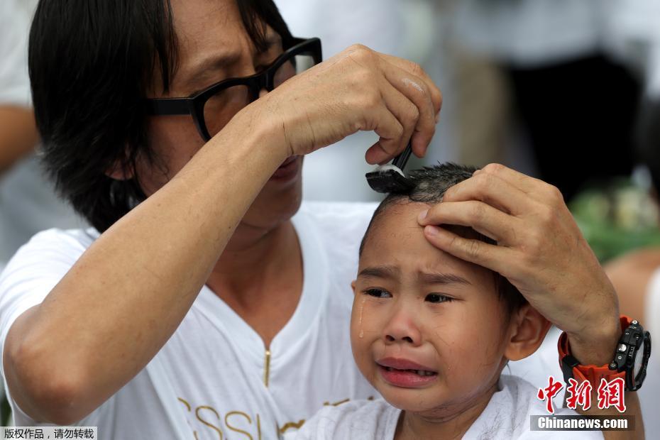 泰国小女孩剃光头悼念国王普密蓬逝世一周年