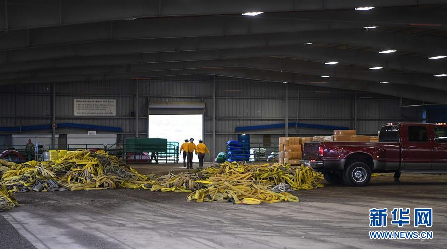 10月19日,工作人员在美国加利福尼亚州圣罗莎附近的一处灭火指挥中心整理消防水带。设在美国加利福尼亚州圣罗莎市附近的灭火指挥中心负责索诺马县全境以及纳帕县部分地区的山林大火灭火任务。据该指挥中心19日提供的数据,该地区有四个主要火场,面积共400多平方公里,80%的火场已被有效控制。新华社记者吴晓凌摄