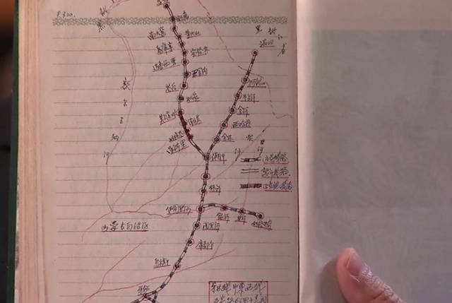 这位青年代表还带来了一本姥爷当年工作的工程日志,里面有他手绘的铁路路线。