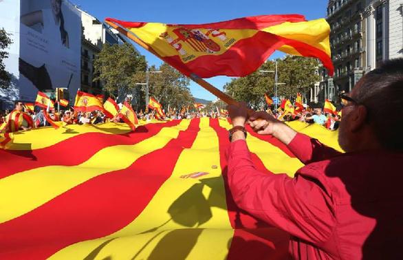 当地时间10月29日,大约30万西班牙民众走上巴塞罗那街头,许多人手中挥舞着西班牙国旗,呼吁西班牙统一,反对加泰罗尼亚独立。10月27日加泰罗尼亚地方议会以70票赞成,10票反对,2票弃权的结果单方面宣布从西班牙独立。这一举措得到许多西班牙民众的抗议。(央视记者魏帆)