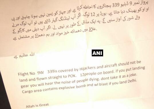 据悉,有人员在飞机上的一间厕所内发现一张纸条,纸条上消息称,该飞机已被劫持者“瞄准”,不能在德里降落,而应直接飞到巴基斯坦控制部分。