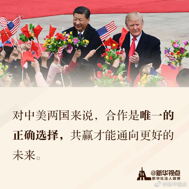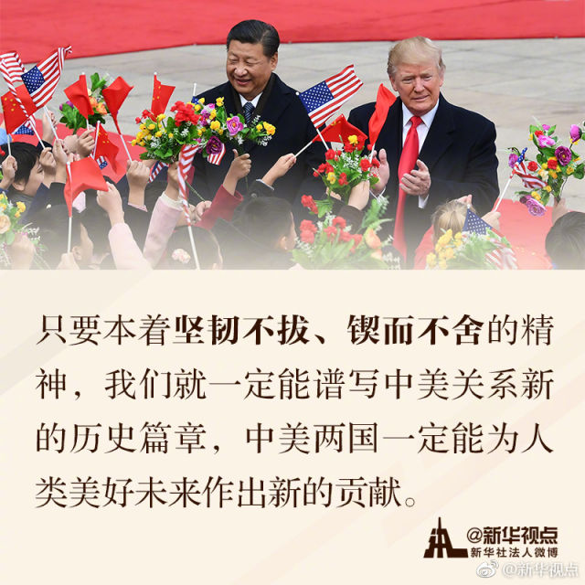 美国总统特朗普访华期间,对于新时代的中美关系,习近平主席作出了哪些重要论述?为未来中美关系发展定下了什么基调?一起来学习这些金句吧!