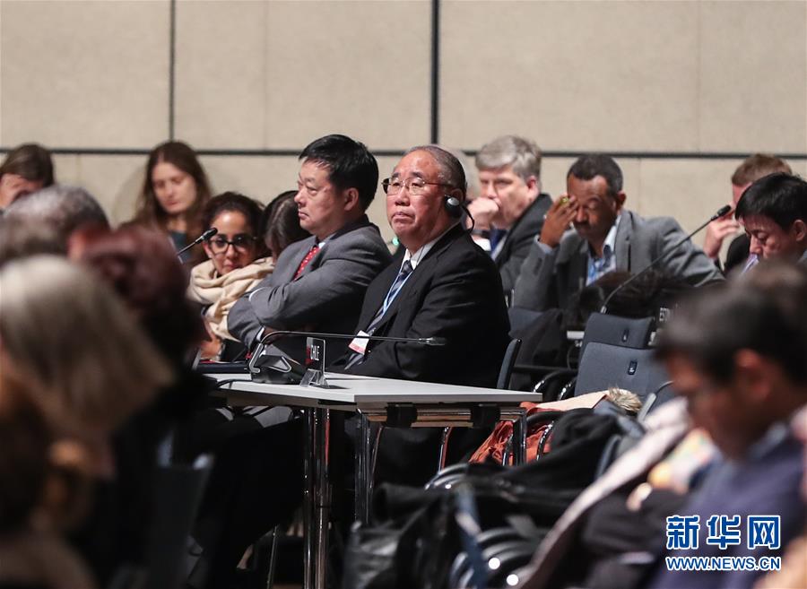 11月18日,在德国波恩,中国代表团团长、中国气候变化事务特别代表解振华(中右)出席闭幕会议。