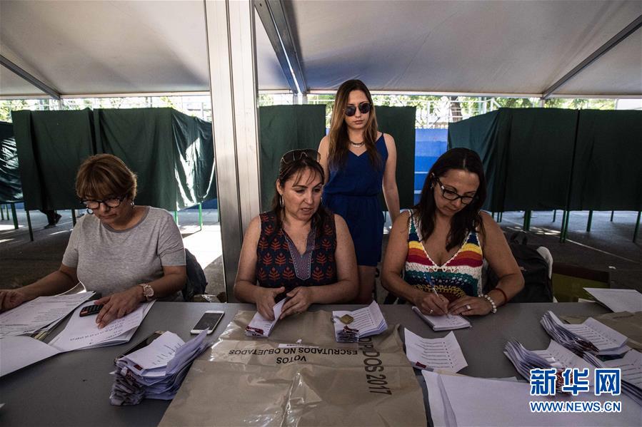 11月19日,在智利圣地亚哥的一个投票站,工作人员清点选票。当日,智利举行总统和议会选举,国内外近1435万名登记选民通过直选方式,选举总统、23名参议员和155名众议员,投票于当地时间19日18时结束。根据智利选举服务局19日公布的初步统计,在已统计的53.05%总统选举选票中,中右翼反对派联盟“智利前进”候选人、前总统皮涅拉得票36.66%,暂时领先。新华社发(豪尔赫·比列加斯摄)