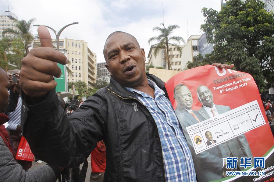 11月20日,一名朱比利党支持者在肯尼亚首都内罗毕的最高法院外庆祝。肯尼亚最高法院20日裁定10月26日举行的总统重新选举结果有效,朱比利党总统候选人、现任总统乌胡鲁·肯雅塔在选举中获胜。新华社发(弗雷德摄)