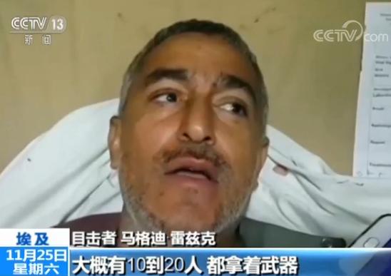 袭击发生之时,阿里什市当地居民马格迪·雷兹克就在清真寺当中。他亲眼目睹了恐怖分子向清真寺内的人群疯狂扫射的场景。而他自己也在枪击中受伤。
