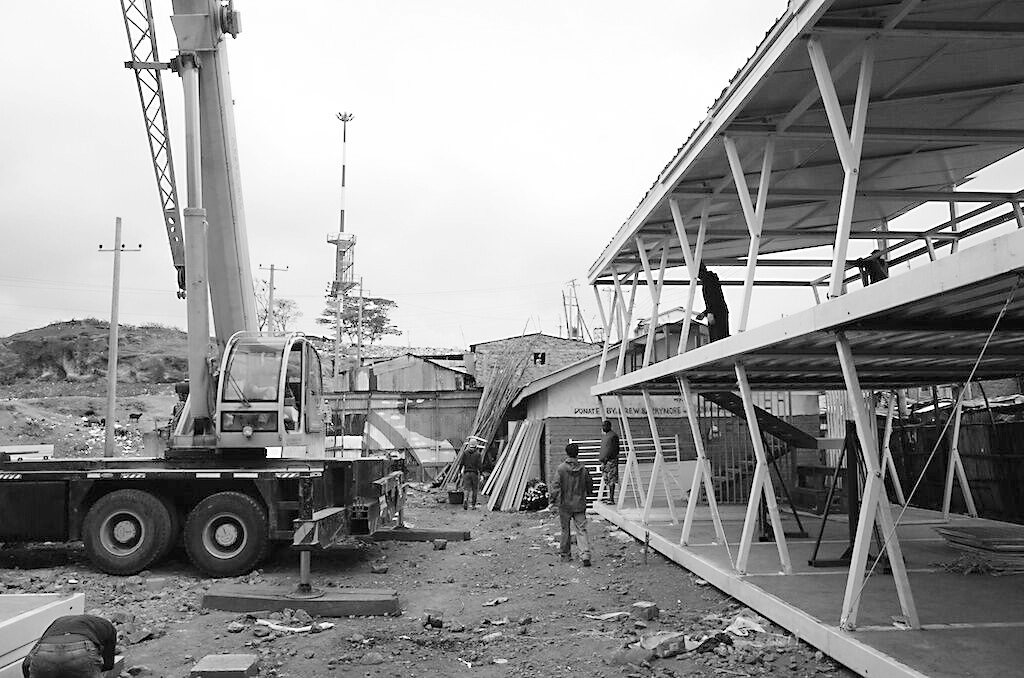 黄正骊还提到发生冲突的风险:这所学校所在地区居住着50万人,基本都是铁皮房子,道路狭窄,一台吊车进入都会像外星人一样引起所有人注意。不怀好意的人可能会借此做些文章,将这样的大型机械视作一笔巨额捐赠,或者看作外来者的入侵。所以,稍有不慎,工地上的人就会成为几十万人的公敌。