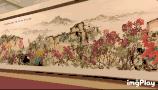 作品以中国山水和花鸟相结合的形式,突出了五大洲30多个主要国家的国花或代表性花卉,以及梅兰竹菊等中国元素。作品中,山水和旭日交相辉映,点缀着飞翔和静落的和平鸽。蔚然耸立的高山象征中国作为负责任大国对世界的担当,和平鸽象征世界和平安宁,在旭日光芒照耀下,百花齐放春满园。