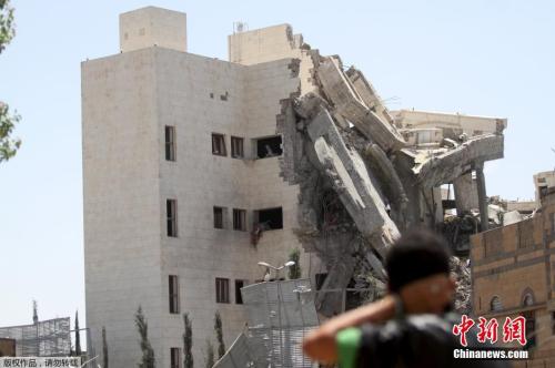 资料图:当地时间2015年5月10日,也门首都萨那,沙特等多国部队空袭也门前总统萨利赫位于首都萨那的住所。