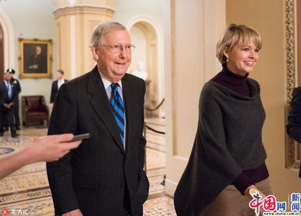 当地时间2018年1月21日,美国华盛顿,参议院多数党领袖米奇·麦康纳尔会后走出参议院大楼。(ERIN SCHAFF/东方IC)