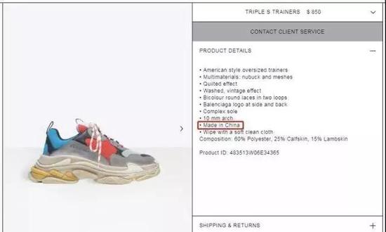 比如此次令中国网友更有底气抵制巴黎世家的原因是:原本印在 Triple S 内底的 Made In Italy 不见了,取而代之的是鞋舌上的 Made In China。