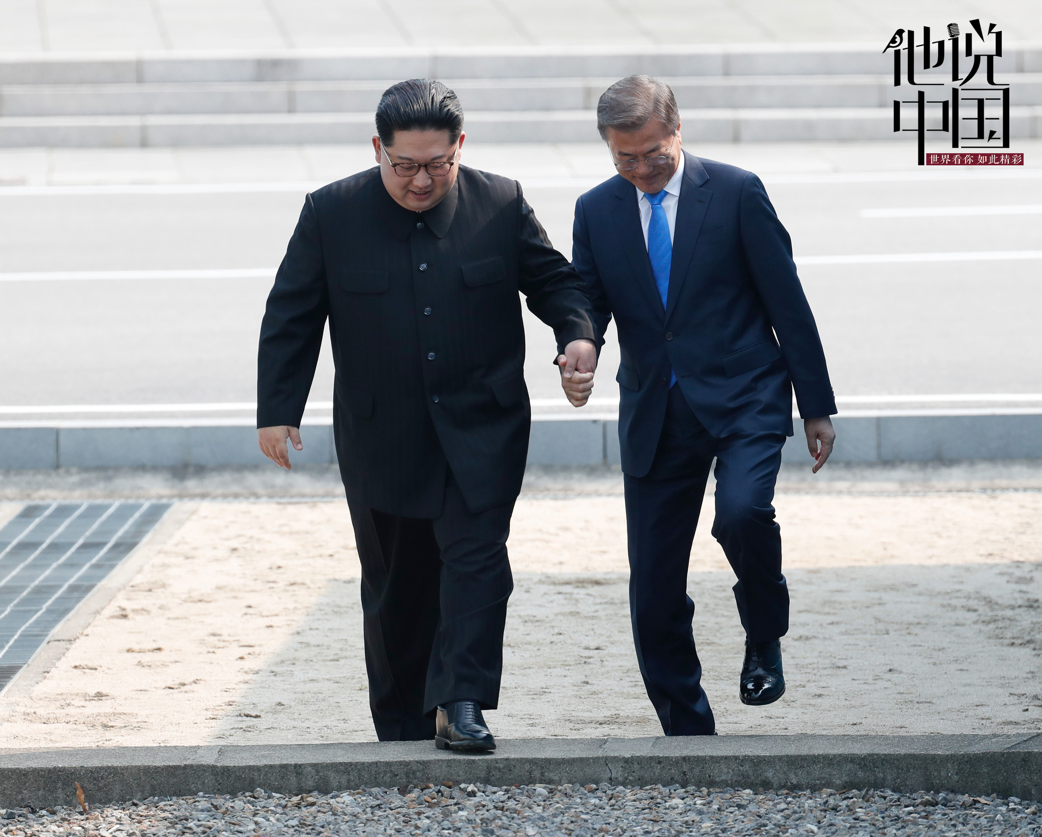 朝韩首脑会晤:金正恩邀请文在寅进入朝方一侧。(图/东方IC)