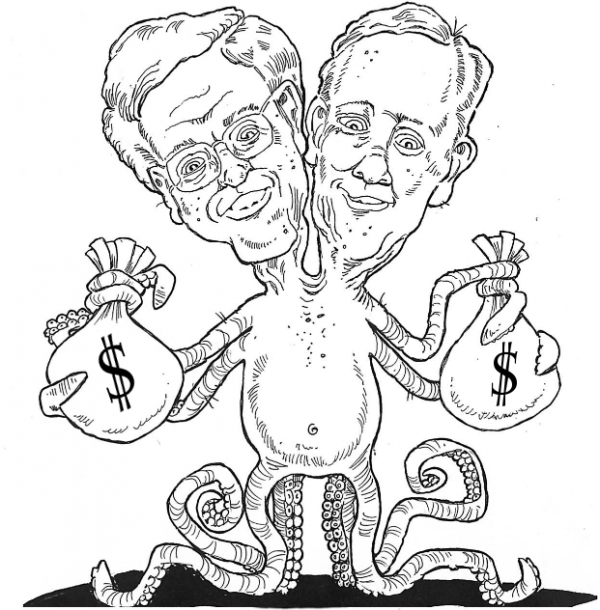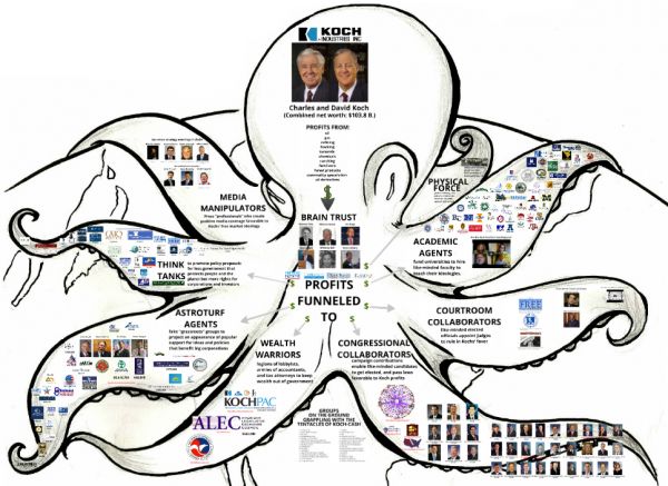 以科赫兄弟为首的科赫章鱼(图片来自关于“气候变化”的群体博客DeSmogBlog)