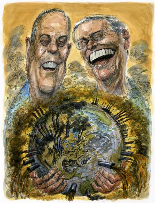 科氏工业集团旗下的企业在全球排污,科赫兄弟试图操控气候决议。(图片来自《滚石》杂志网站)