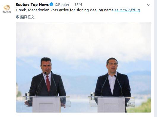 英国路透社6月17日消息,希腊如期于当日与邻国马其顿政府签署历史性协议,解决缠扰两国20多年的马其顿国名问题。根据协议,马其顿国名将更改为“北马其顿共和国”。