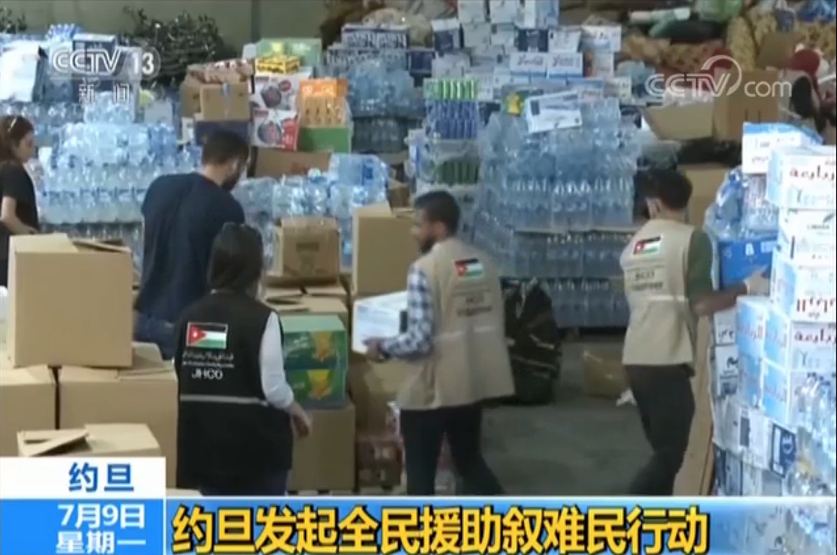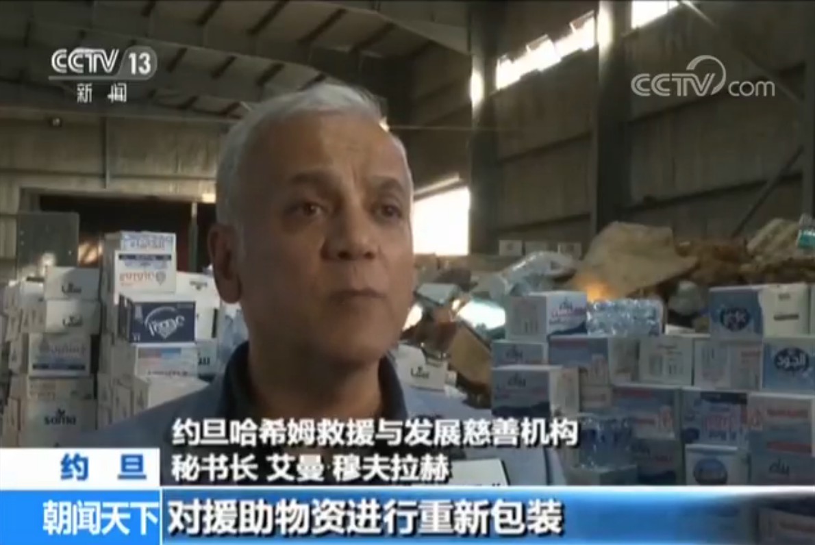 约旦哈希姆救援与发展慈善机构秘书长 艾曼·穆夫拉赫:这是一个在约旦全国范围内发起的援助战。我们机构负责安排对援助物资进行重新包装,确保都在有效期内,然后同约旦军方一起把援助物资装上卡车,之后军用卡车将把援助物资运送到约叙边境,在那里再把援助物资发放给叙利亚境内的叙利亚人。