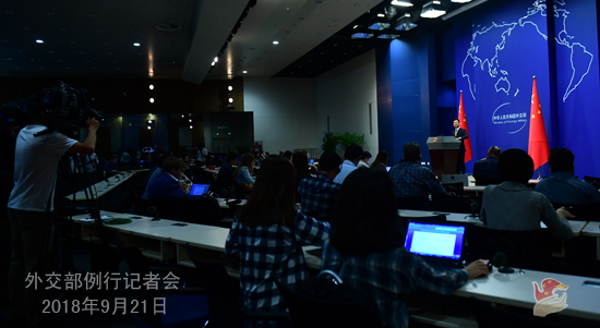 中国网9月21日讯 据外交部网站消息,9月21日,外交部发言人耿爽主持例行记者会,就中美贸易磋商、夏季达沃斯论坛落幕等回答记者提问。以下为记者会文字实录: