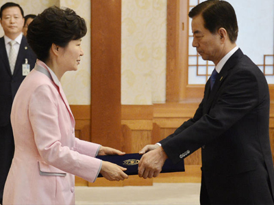 朴槿惠向韩新任防长韩民求授予任命状(高清)