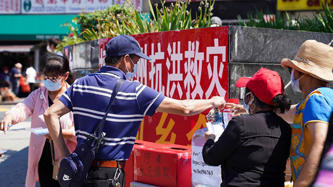 美国纽约地区多个华人社团为河南郑州抗洪救灾积极募捐。