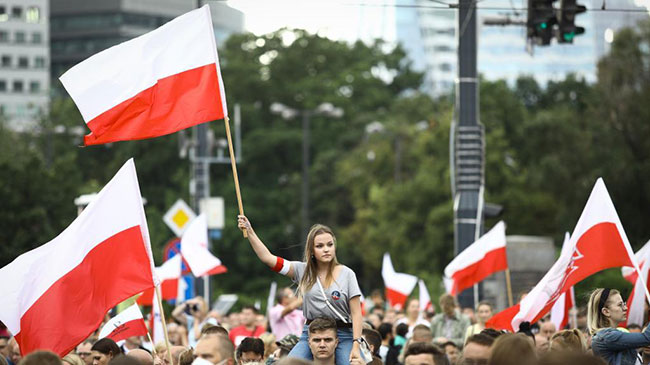 当日,人们在波兰首都华沙举行活动,纪念华沙起义77周年。