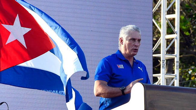 古共中央第一书记、古巴国家主席迪亚斯-卡内尔17日谴责美国对古巴长期封锁,揭批美国政府资助反古势力日前在古巴煽动骚乱,企图破坏古巴政治社会稳定。约10万民众17日聚集在古巴首都哈瓦那海滨大道一处广场举行爱国集会。